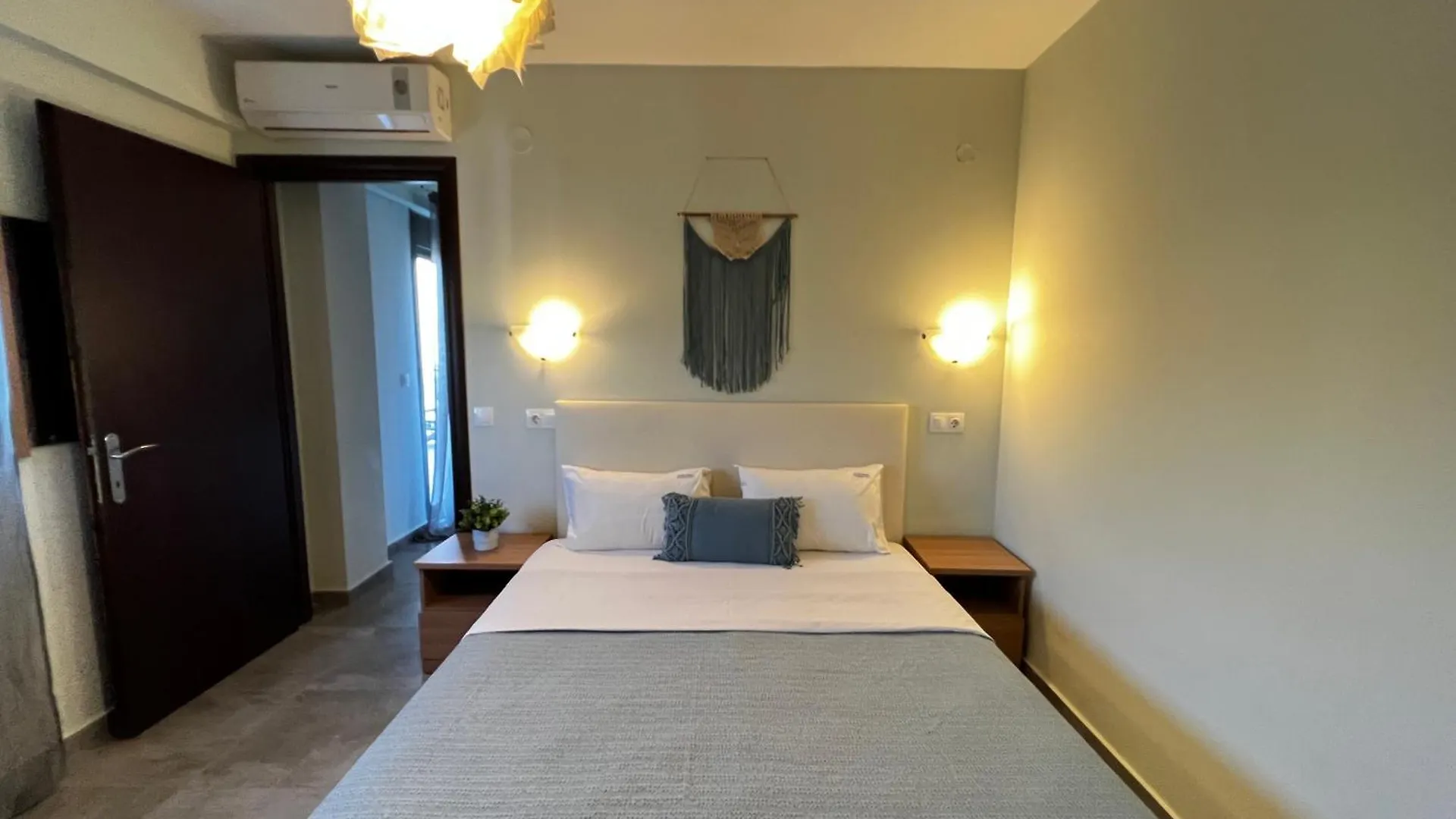 The bright living opens onto a large balcony with a beautiful view of Nikiti.